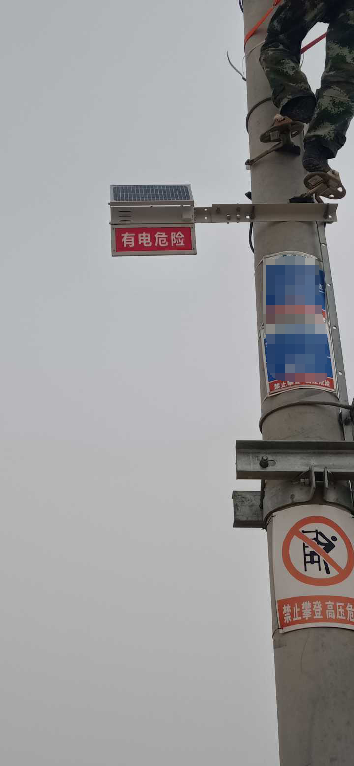寧夏供電單位采購安裝我司(深圳市特力康科技有限公司)高壓警示牌,該裝置采用太陽能供電及電池供電,白天當有物體接近裝置時,設備紅外感應模塊立即啟動,由控制系統智能聯動語音警示模塊,啟動警笛告警,提醒行人、注意高壓輸電線路,夜晚設備則以LED燈標語進行警示。設備支持定時間自動播放警笛以提醒在該線路內的人員。