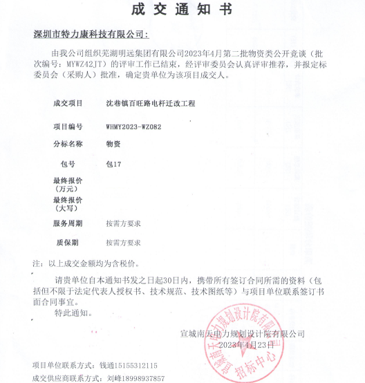 特力康中標國網黑龍江送變電工程公司的2024年度第18次物資類競爭性談判采購項目——慶陽驅鳥器物資框 特力康中標國網甘肅省電力公司省管產業單位2024年第五次物資競爭性談判授權采購項目 中標喜訊:深圳市特力康科技有限公司成功入圍許繼集團綜合能源公司輸電線路視頻在線監測裝置模塊集采項目 中標喜訊:特力康成功中標國網重慶市電力公司渝中一片區項目 特力康成功中標國網天津市電力公司2024年第二次?物?資招標項目 特力康中標國網安徽省電力有限公司蕪湖供電公司2024年3月非物質采購項目 特力康架空輸電線路導線弧垂監測裝置,守護湖北輸電線路弧垂安全 特力康輸電線路防外力破壞系統,為江西境內綿延的輸電線路筑起“主動防護屏障”。 特力康北斗桿塔傾斜在線監測裝置,守護山西電網桿塔穩定 特力康高壓輸電線路導線覆冰在線監測裝置,為河南電網覆冰護航 鄂電穩線“哨兵”:特力康舞動監測裝置守護超高壓線路舞動安全 重慶變電站“防鳥衛士”:特力康一體化驅鳥器守護山城電網 特力康輸電線路智能AI多目監控裝置+傾斜監測守護山西輸電生命線 鄂網“全景眼”:特力康一體化視頻監控系統守護輸電線路 山東電網 “穩塔哨兵”:特力康智能桿塔傾斜監測預警裝置筑牢電力桿塔安全防線 寧夏配電線路安裝了我司防外破電子化智能警示牌